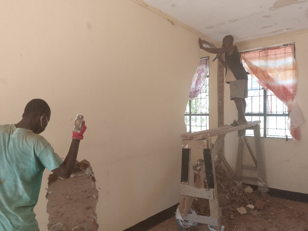 We had a prayer service that included all staff, the pastor (also our school director) and the student prefects in charge of religion. After that we started assembling furniture and moving things in. We even got ceiling fans for the four offices. Below is the song sung during the prayer service to ask for blessings on the office and work done there.
